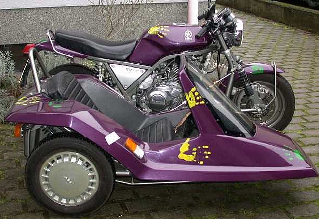 SRX 600 mit Jeaniel Cobra Seitenwagen von Walter Gespannbau aus Körle mit sehr eigenwilliger aber auch auffälliger Lackierung - weiß jemand wo dieses Gespann abgeblieben ist?