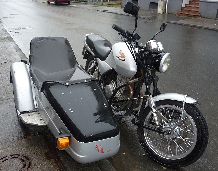 Now a little discription in english because of some people in the WWW and on FB like to know how the SRX turned into a three wheeler - First let me say I buyed it years ago finished with sidecar. It is a modification from a company named Carell - an EML dealer (Not longer in business). The SRX is a german 1XL from 1986 and the sidecar is a EML Mini (netherland) same year. The SRX outfit is a quick and maneuvereable fun toy for small streets! It is not for highway use or highspeed!