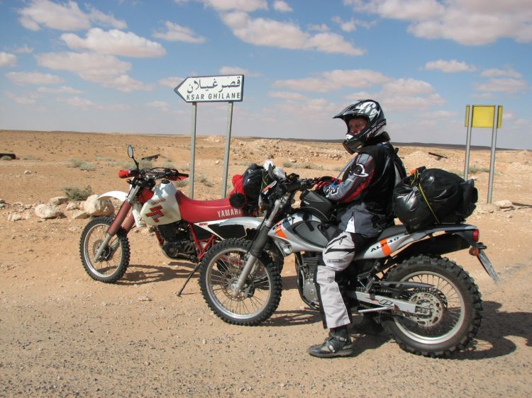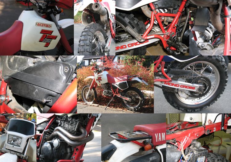 Die Vorbereitungen an der TT waren recht umfangreich, sie sollte zur Not im 2 Mann Betrieb laufen das hieß Beifahrerfußrasten und Schweißarbeiten am Rahmen. Gepäck sollte sie auch tragen können und natürlich auch mich - einen Gepäckträger, ein verstärktes Rahmenheck, den Luftfilter zusätzlich mit Schrauben dichten, dickere Krümmer für einen besseren Temperaturhaushalt, eine große Seitenständerplatte mit anpassen der Länge desselben auf die Höhe des Whitepower Federbeins, eine härtere Gabel / Federn / Vorspannung und anderes Öl, einen größeren Tank von Acerbis, ein ruckgedämpftes Hinterrad, Sandreifen / Michelin Desert, einen besseren Scheinwerfer..... alles das waren Dinge die zu erledigen waren.